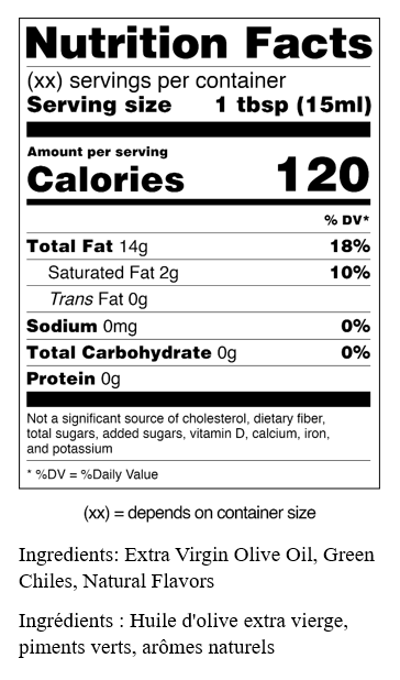 Our delightfully spicy and pungent Chimichurri Verde Olive Oil is made with a base of fused green chili olive oil flavored with a medley of spices and herbs including garlic, cilantro, parsley, oregano, black pepper, and red chili.